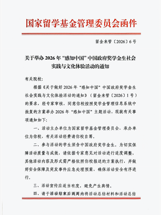 我校获批国家留学基金委2026年“感知中国”社会实践立项项目