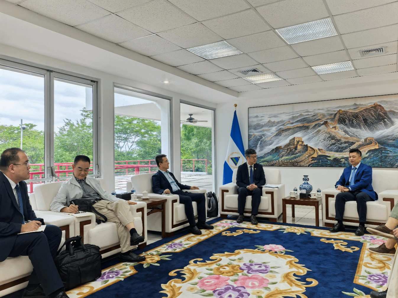 11日,团组主要成员专程拜会中国驻尼加拉瓜大使馆,瞿瑜辉大使对鲁班工坊的成功落地及天津院校在推动对尼职教合作、增进两国民间友谊方面取得的扎实成效给予了高度评价。瞿瑜辉特别强调,职业教育合作已成为双边关系中的亮点,起到了良好的示范作用,使馆将提供全力支持与协助,希望天津市与马那瓜市能以此坚实合作为基础,加快推动友城建设的相关进程,力争使其成为2026年两国庆祝复交五周年时的标志性成果之一。