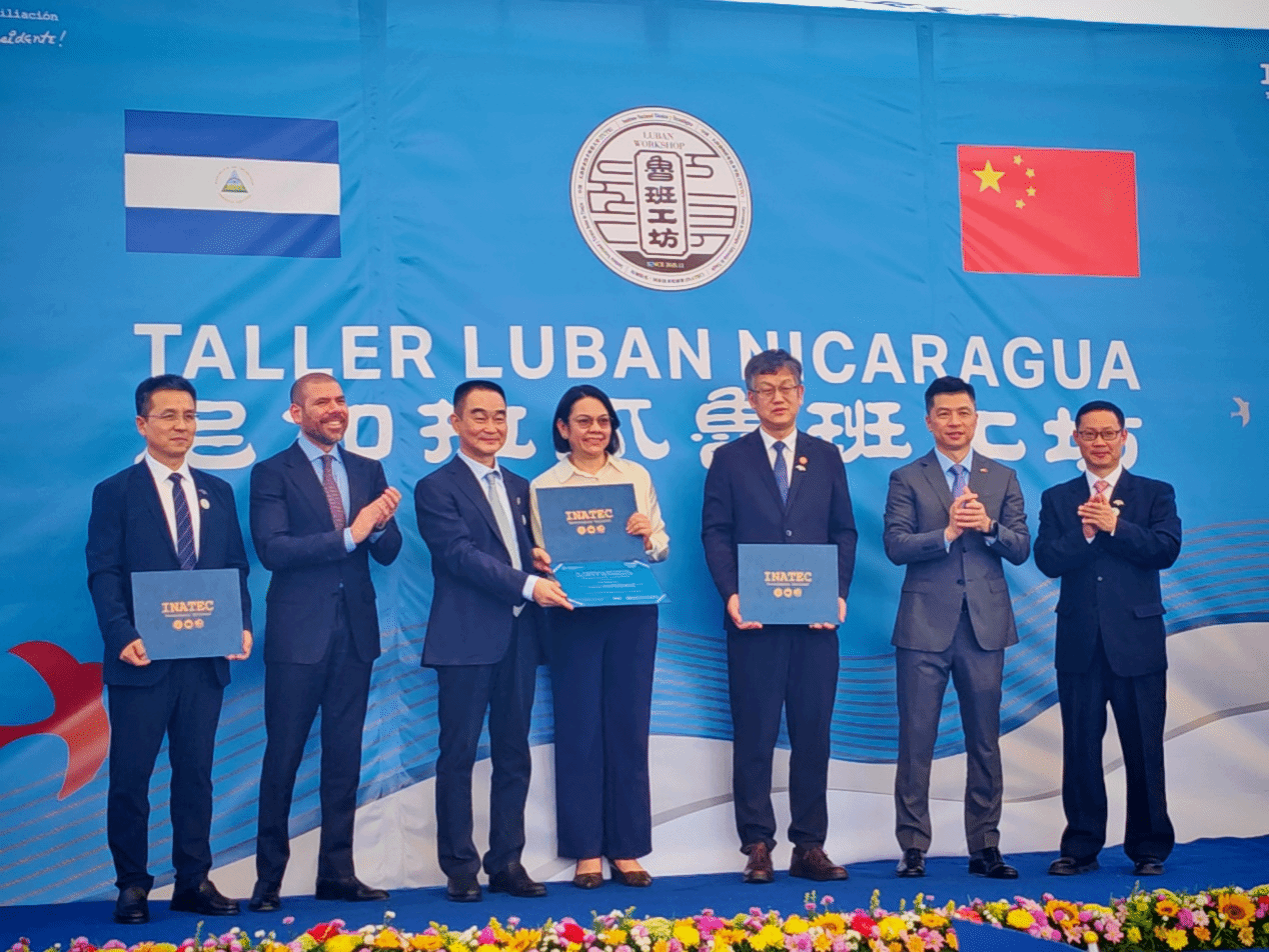尼加拉瓜位于中美洲地区中部,是中美洲面积最大的国家,北接洪都拉斯,南连哥斯达黎加,东邻大西洋,西濒太平洋,地理位置独特。尼加拉瓜鲁班工坊的成功揭牌,是一个辉煌的里程碑,更是一个充满希望的新起点。展望未来,中尼双方将锚定“管理团队、教学团队、设备使用、资源开发、作用发挥、辐射引领”六大关键维度,持续协同发力,共同致力于工坊的长期可持续发展。合作双方设定了建设目标,将尼加拉瓜鲁班工坊全力打造为立足本国、示范美洲、影响全球的鲁班工坊建设新标杆,为尼加拉瓜推动产业升级、实现高质量发展源源不断地输送高素质技术技能人才,为深化中尼友谊、高质量共建“一带一路”、推动构建人类命运共同体作出新的、更大的贡献。