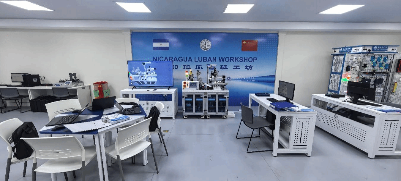 2025年3月,中方建设院校团组赴尼,在劳雷亚诺·奥尔特加和中国驻尼加拉瓜大使陈曦见证下,与尼加拉瓜国家技术培训署签署了建设运营鲁班工坊合作协议,标志着美洲第一个鲁班工坊“落地”工作全面推进。尼加拉瓜联合总统罗萨里奥·穆里略在3月27日的全国广播讲话中对鲁班工坊建设给予高度评价。在各方的支持和努力下,尼加拉瓜鲁班工坊进入加速建设阶段,场地建设、装备配置、资源开发、师资培训等工作迅速开展。场地建设方面,尼方投资1.1亿科多巴(约合2000多万人民币),将位于其首都马那瓜的法布雷托职业学校(技术中心)进行土建和电气改造后配备现代化办公教学家具整体用于鲁班工坊建设。专业建设方面,根据尼加拉瓜产业发展需求,中尼团队共同确定,工坊先期规划物联网应用技术、电气自动化技术、机电一体化技术、机械制造及自动化4个专业。中尼教师团队联合研制教学标准,经试用、验证和完善后,由尼国家技术培训署认证纳入其国家职业教育体系,并在尼全国进行分享应用。师资培训方面,尼方根据中方提供的专业师资要求,全国遴选并组建尼鲁班工坊专业教师团队。双方协作顺利完成本地、来华、线上、现场4期本土师资EPIP标准化进阶式培训,确保尼教师能够独立开展教学工作。教学装备及设施配备方面,结合专业培养要求,中尼共同协商为鲁班工坊配置了自动化生产线、数控加工中心在内的105台套装备及仪器,装备国产化率达到100%。教学资源开发方面,中尼双方师资团队合作开发了16本双语教材和165个微课视频,并开展了EPIP模式体系、标准体系和资源体系的西班牙语翻译、出版工作。在双方通力合作下,尼鲁班工坊建设各项工作进展顺利。2025年11月,尼鲁班工坊项目成功通过中国教育国际交流协会组织的鲁班工坊运营项目认定。